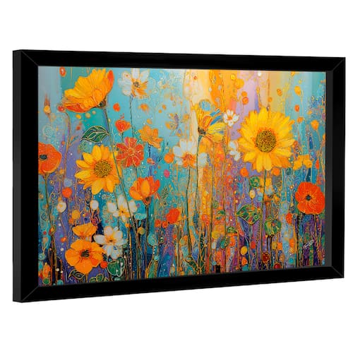 Quadro Decorativo Floral Moldura Preta - 180x105cm -