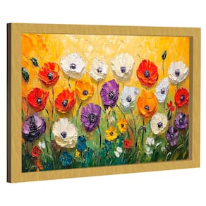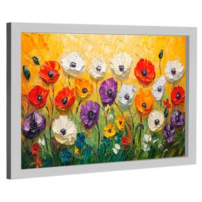Quadro Decorativo Flores Abstratas Coloridas Moldura Branca - 84x54cm -
