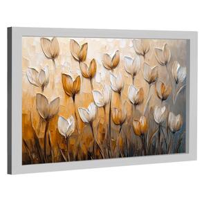 Quadro Decorativo Flores Abstratas Estilo Pintura Moldura Branca - 118x78cm -