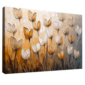 Quadro Decorativo Flores Abstratas Estilo Pintura Moldura Dourada - 118x78cm -