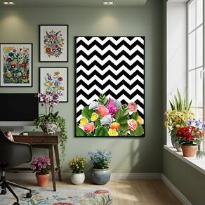 Quadro Decorativo Flores Com Listras 70x50cm Mold Preta