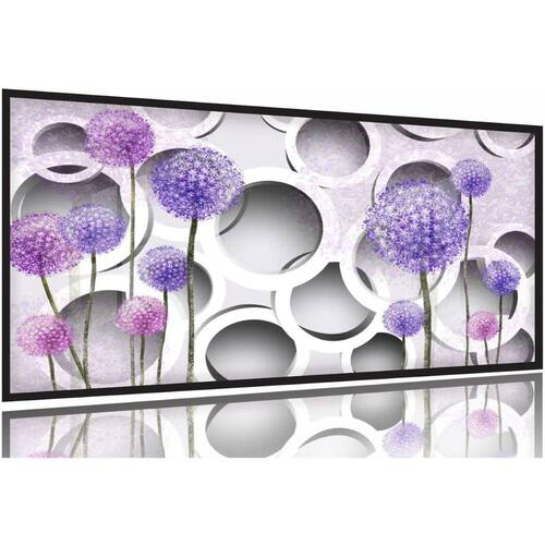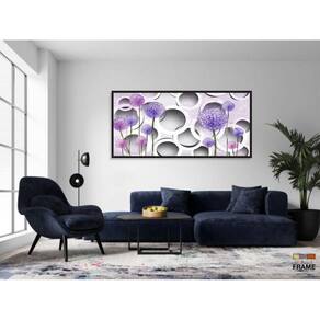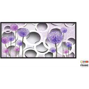 Quadro Decorativo Flores Dente De Leão Lilas 130x60 Moldura Preta 2x2