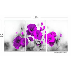 Quadro Decorativo Flores Magenta 120x60 3 peças