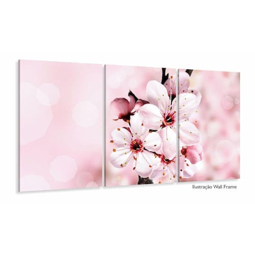 Quadro Decorativo Flores Rosa para Hall em tecido 3 peças