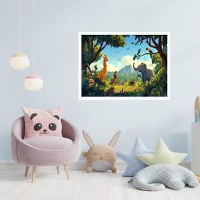 Quadro decorativo floresta animais - 50x70cm Cor: moldura preta Informações do produto tire todas as suas dúvidas no descritivo abaixo: decoração para quarto, sala, cozinha, escritório, área gourmet e muito mais. Chega de paredes vazias medidas - cada peça tem 70x50cm . Material do papel - papel fotográfico brilhante de altíssima resolução acabamento - todos os quadros são acompanhados de vidro para proteção da imagem. - moldura em madeira maciça na cor preta ou branca conforme produto escolhido e pendurador. - os quadros são embalados de forma segura com plástico bolha com camada dupla de acordo com o tamanho dos quadros. - de 3 meses. Meu quadro chegou. Como posso fixá-lo Você precisa apenas de um martelo e um prego, pois os quadros já vão acompanhados de penduradores. Esta é a forma mais indicada. Como posso limpar meu quadro A limpeza é feita como um móvel comum da sua casa. Apenas um pano seco ou espanador são suficientes para tal