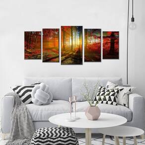 Quadro Decorativo Floresta Laranjada 5 Peças 160X70 Quadro decorativo paisagem florenta laranjada 5 peças para sala As paredes ganham cor e vida com quadros e painéis decorativos Um quadro super grande combina com qualquer ambiente Impresso em tecido canvas mesmo Utilizado em tela de pinturas e montado em bastidor de madeira. Com grampos por trás do quadro para melhor acabamento. Dimensão 70cm altura por 160cm comprimento,e a espessura 2 cm. Medidas de cada peça: 30x50, 30x60, 40x70, 30x60,30x50, Se preferir podemos fazer com outras imagem, basta nos enviar a imagem com alta resolução após a compra Ean: 7908245608599