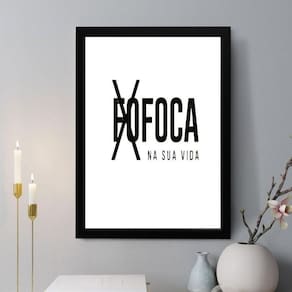 Quadro decorativo fo foca na sua vida 45x34cm - com vidro Cor: moldura branca Informações do produto tire todas as suas dúvidas no descritivo abaixo: decoração para quarto, sala, cozinha, escritório, área gourmet e muito mais. Chega de paredes vazias medidas - cada peça tem 45x34cm a3 . Material do papel - papel fotográfico brilhante de altíssima resolução acabamento - todos os quadros são acompanhados de vidro para proteção da imagem. - moldura em madeira maciça na cor preta ou branca conforme produto escolhido e pendurador . - os quadros são embalados de forma segura com plástico bolha com camada dupla de acordo com o tamanho dos quadros. Garantia - garantia de 3 meses. Meu quadro chegou. Como posso fixá-lo Você precisa apenas de um martelo e um prego, pois os quadros já vão acompanhados de penduradores. Esta é a forma mais indicada. Como posso limpar meu quadro A limpeza é feita como um móvel comum da sua casa. Apenas um pano seco ou espanador são suficientes para tal