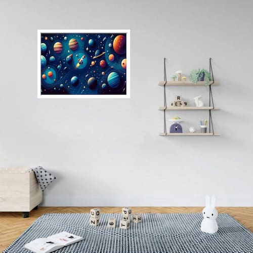 Quadro Decorativo Foguete Espaço - 50X70Cm