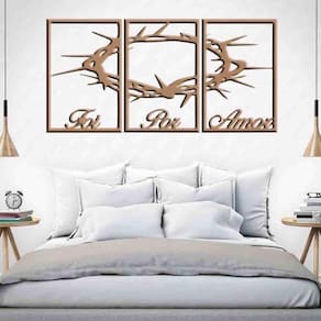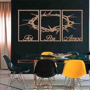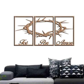 Quadro Decorativo Foi Por Amor 6Mm Vazado - Md/Cru TAMANHO & INSTALAÇÃO: Tamanho total: 122cm comprimento X 60cm altura Com espaçamento recomendado de 1 cm entre peças, Peças laterais: 40x60 cm | Peça central: 40x60 cm Espaçamento entre as peças: 1 cm A instalação é bem simples, não será preciso fazer sujeira furando a parede pois utilizamos o método bem prático para instalar, contém fita dupla face 3M no verso do quadro. LIMPEZA DO PRODUTO Para limpeza, utilize apenas um pano umedecido com água sem produtos químicos para garantir a durabilidade. ACABAMENTO Nossos produtos são fabricados em MDF com espessura de 6mm cortados a laser. Desta forma terá um produto com acabamento de alta qualidade. Bordas/laterais serão na cor preta feito com a própria máquina de corte a laser, dando acabamento perfeito. GARANTIA / EMBALAGEM Embalagem reforçada e segura para que receba seu produto em perfeito estado. Garantia de produto de qualidade ou seu dinheiro de volta.