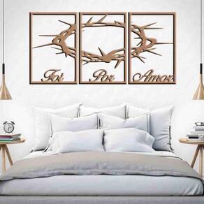 Quadro Decorativo Foi Por Amor 6Mm Vazado - Md/Cru TAMANHO & INSTALAÇÃO: Tamanho total: 122cm comprimento X 60cm altura Com espaçamento recomendado de 1 cm entre peças, Peças laterais: 40x60 cm | Peça central: 40x60 cm Espaçamento entre as peças: 1 cm A instalação é bem simples, não será preciso fazer sujeira furando a parede pois utilizamos o método bem prático para instalar, contém fita dupla face 3M no verso do quadro. LIMPEZA DO PRODUTO Para limpeza, utilize apenas um pano umedecido com água sem produtos químicos para garantir a durabilidade. ACABAMENTO Nossos produtos são fabricados em MDF com espessura de 6mm cortados a laser. Desta forma terá um produto com acabamento de alta qualidade. Bordas/laterais serão na cor preta feito com a própria máquina de corte a laser, dando acabamento perfeito. GARANTIA / EMBALAGEM Embalagem reforçada e segura para que receba seu produto em perfeito estado. Garantia de produto de qualidade ou seu dinheiro de volta.