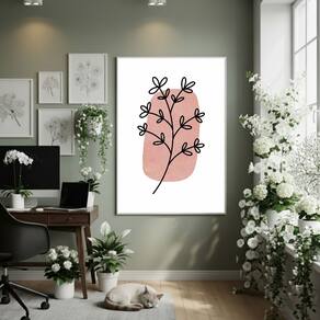 Quadro Decorativo Folhagem Abstrata 70x50cm Mold Preta