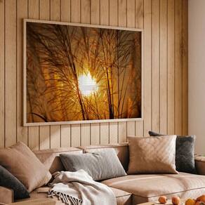 Quadro Decorativo Folhagem Relva Por Do Sol - 50x70cm - Cor: Moldura Preta