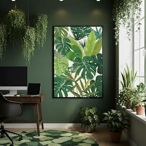 Quadro Decorativo Folhagem Tropical 70x50cm Mold Preta