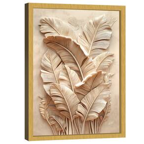 Quadro Decorativo Folhas 3D Moldura Dourada - 180x105cm -
