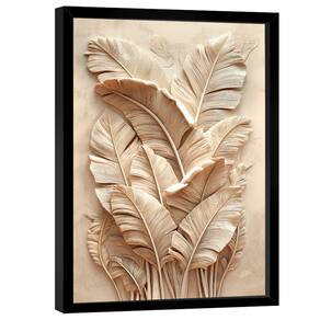 Quadro Decorativo Folhas 3D Moldura Dourada e Vidro - 60x40cm -