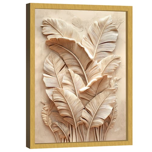 Quadro Decorativo Folhas 3D Moldura Dourada - 118x78cm -