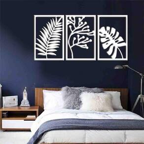 Tamanho total: 122cm comprimento x 60cm altura com espaçamento recomendado de 1 cm entre peças, Peças laterais: 60x40 cm peça central: 60x40 cm Espaçamento entre as peças: 1 cm A instalação é bem simples, não será preciso fazer sujeira furando a parede pois utilizamos o método bem prático para instalar, contém fita dupla face 3m no verso do quadro.