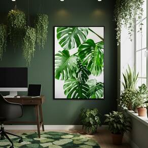 Quadro Decorativo Folhas De Monstera 70x50cm Mold Preta