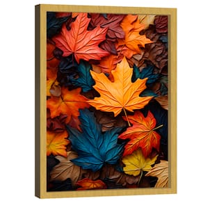 Quadro Decorativo Folhas de Outono Moldura Dourada - 84x54cm -