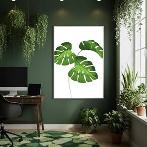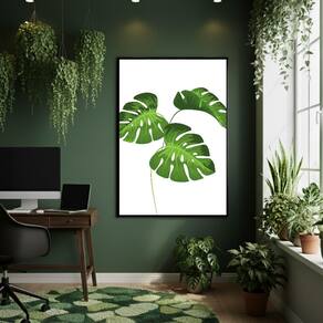 Quadro Decorativo Folhas Monstera 70x50cm Mold Branca