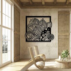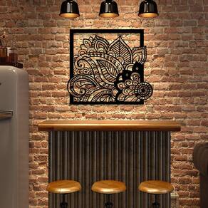 Especificações Técnicas: Medidas: comprimento: 39 cm altura: 3mm largura: 39 cm Material: mdf 3mm Cor: preto Tema: folhas Formas de instalação: basta utilizar fitas dupla face Quantidade: 1 unidade