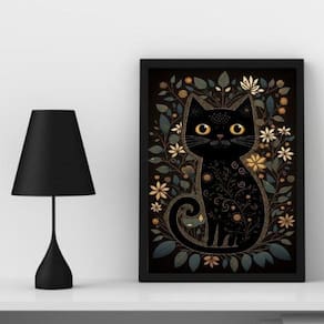 O Quadro Decorativo Folk Arte Gato Preto é a peça ideal para decorar o seu ambiente com estilo e personalidade. Com medidas de 45x34cm A3 , este quadro possui uma moldura de madeira preta que proporciona um acabamento elegante e sofisticado. Além disso, ele é acompanhado de vidro para proteção da imagem, garantindo maior durabilidade e preservação da arte. Este quadro é perfeito para ser utilizado em diversos cômodos, como quarto, sala, cozinha, escritório, área gourmet, entre outros. Não deixe suas paredes vazias e dê um toque especial à sua decoração. O material do papel utilizado é papel fotográfico brilhante de altíssima resolução, que realça os detalhes da imagem e proporciona uma visualização nítida e de qualidade. Além disso, a moldura é feita em madeira maciça na cor preta, o que confere durabilidade e resistência ao produto. Para fixar o quadro na parede, basta utilizar um martelo e um prego, pois ele já vem acompanhado de penduradores. Essa é a forma mais indicada para garantir uma instalação segura e prática. A limpeza do quadro é muito simples, basta utilizar um pano seco ou um espanador, assim como você faria com um móvel comum da sua casa. Não é necessário o uso de produtos químicos ou materiais específicos. O Quadro Decorativo Folk Arte Gato Preto possui de 3 meses, garantindo a sua total satisfação com o produto. Adquira agora mesmo o Quadro Decorativo Folk Arte Gato Preto e deixe o seu ambiente mais bonito e cheio de estilo.