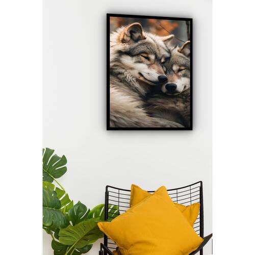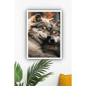 Quadro Decorativo Foto Casal de Lobos - 70x50cm - Cor: Moldura Preta
