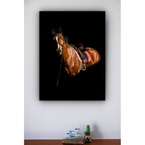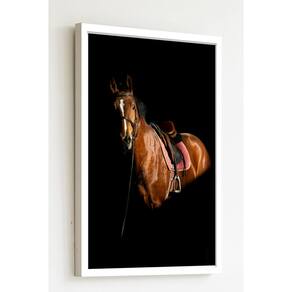 Quadro Decorativo Foto Cavalo Fundo Preto - 70x50cm - Cor: Moldura Preta