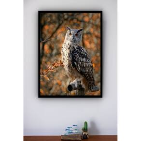 Quadro Decorativo Foto Coruja Floresta - 70x50cm - Cor: Moldura Branca