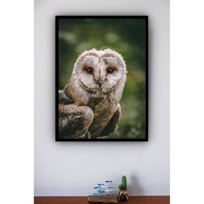 Quadro Decorativo Foto Coruja Fundo Verde - 70x50cm - Cor: Moldura Preta