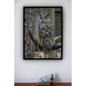 Quadro Decorativo Foto Coruja Galho Árvore - 70x50cm - Cor: Moldura Preta