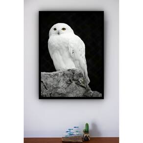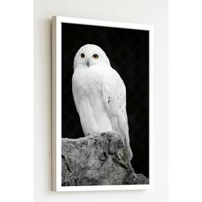 Quadro Decorativo Foto Coruja Na Pedra - 70x50cm - Cor: Moldura Branca