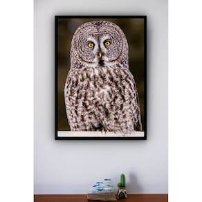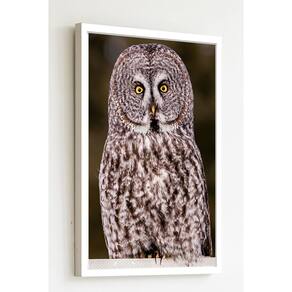 Quadro Decorativo Foto Coruja Olho Amarelo - 70x50cm - Cor: Moldura Preta