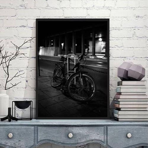 Quadro Decorativo Fotografia Bicicleta Pneu Furado - Tamanho: A4 (20 x 30) / Acabamento: Película de acetato / Moldura: Madeira preta