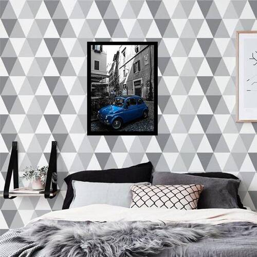 Quadro Decorativo Fotografia Carro Retrô Azul - Tamanho: A4 (20 x 30) / Acabamento: Película de acetato / Moldura: Madeira preta