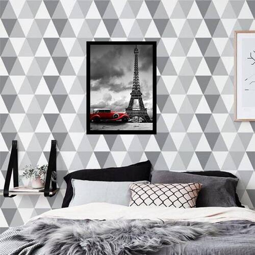 Quadro Decorativo Fotografia Carro Vermelho Torre Eiffel - Tamanho: A4 (20 x 30) / Acabamento: Película de acetato / Moldura: Madeira preta