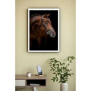 Quadro Decorativo Fotografia Cavalo Perfil - 70x50cm - Cor: Moldura Branca