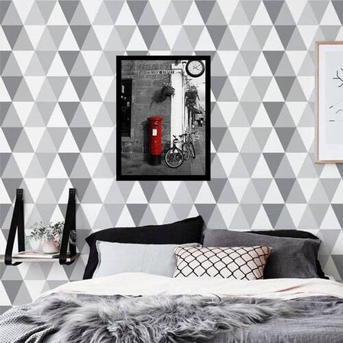 Quadro Decorativo Fotografia Correio Vermelho - Tamanho: A4 (20 x 30) / Acabamento: Película de acetato / Moldura: Madeira preta