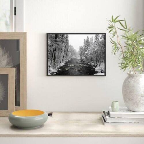 Quadro Decorativo Fotografia Floresta com Neve - Tamanho: A4 (20 x 30) / Acabamento: Película de acetato / Moldura: Madeira preta