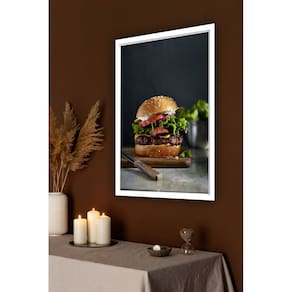 Quadro Decorativo Fotografia Hambúrguer - 70x50cm - Cor: Moldura Branca