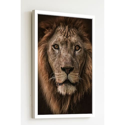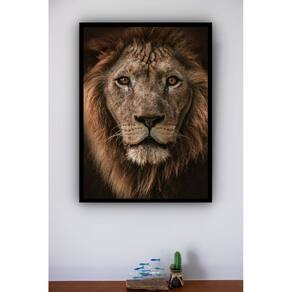 Quadro Decorativo Fotografia Leão - 70x50cm - Cor: Moldura Preta