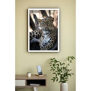 Quadro Decorativo Fotografia Onça Pintada - 70x50cm - Cor: Moldura Branca