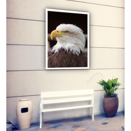 Quadro decorativo fotografia perfil águia - 70x50cm Cor: moldura preta Informações do produto tire todas as suas dúvidas no descritivo abaixo: decoração para quarto, sala, cozinha, escritório, área gourmet e muito mais. Chega de paredes vazias medidas - cada peça tem 70x50cm . Material do papel - papel fotográfico brilhante de altíssima resolução acabamento - todos os quadros são acompanhados de vidro para proteção da imagem. - moldura em madeira maciça na cor preta ou branca conforme produto escolhido e pendurador. - os quadros são embalados de forma segura com plástico bolha com camada dupla de acordo com o tamanho dos quadros. - de 3 meses. Meu quadro chegou. Como posso fixá-lo Você precisa apenas de um martelo e um prego, pois os quadros já vão acompanhados de penduradores. Esta é a forma mais indicada. Como posso limpar meu quadro A limpeza é feita como um móvel comum da sua casa. Apenas um pano seco ou espanador são suficientes para tal Marca: Não Informado