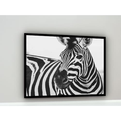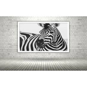 Quadro Decorativo Fotografia Zebra Preto e Branco - 70x50cm - Cor: Moldura Branca