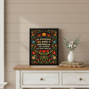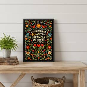 Quadro Decorativo Frase 40 Anos 24x18cm Mold Branca Vidro