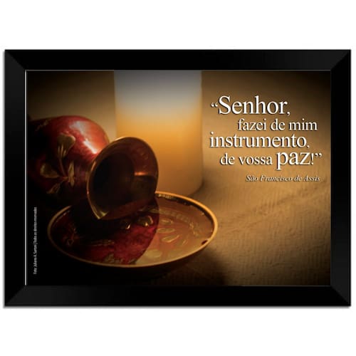 Senhor, fazei-me instrumento de vossa paz - São Francisco de Assis Quadro decorativo completo com moldura, vidro e suporte para prender na parede. Imagem exclusiva em HD impressa em papel fotográfico profissional. Especificações: - Medida Imagem: 30x20cm - Medida Total com a moldura: 33x23cm - Profundidade de 1cm - Moldura em Madeira de reflorestamento 100% madeira - Fundo em MDF 3mm. - Vidro na parte frontal do quadro. Marca: Evangelize