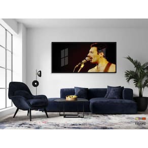 Quadro Decorativo Fred Mercury Queen 130x60 Moldura Preta 2x2