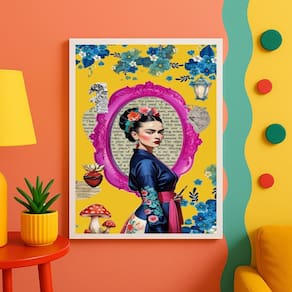 Quadro Decorativo Frida Elegante - Cores Vibrantes 33x24cm - com vidro - Cor: Moldura branca