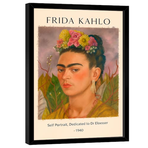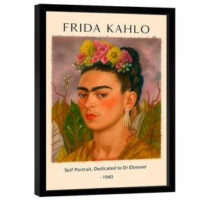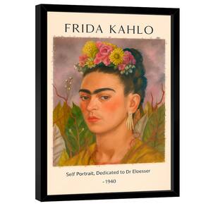 Quadro Decorativo Frida Kahlo Self Portrait, Dedicated to Dr Eloesser Moldura Preta e Vidro - 150x100cm -