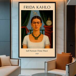 Quadro Decorativo Frida Kahlo Self Portrait, Time Flies Borda Infinita - 180x105cm -